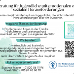 Das „Teenie-Projekt“ bietet Jugendlichen einen sicheren Rahmen für den Austausch mit Gleichaltrigen, individuelle kurz- oder langfristige Beratung und über die Einzelberatung hinausgehende Arbeit mit den Familiensystemen oder anderen sozialen Systemen.