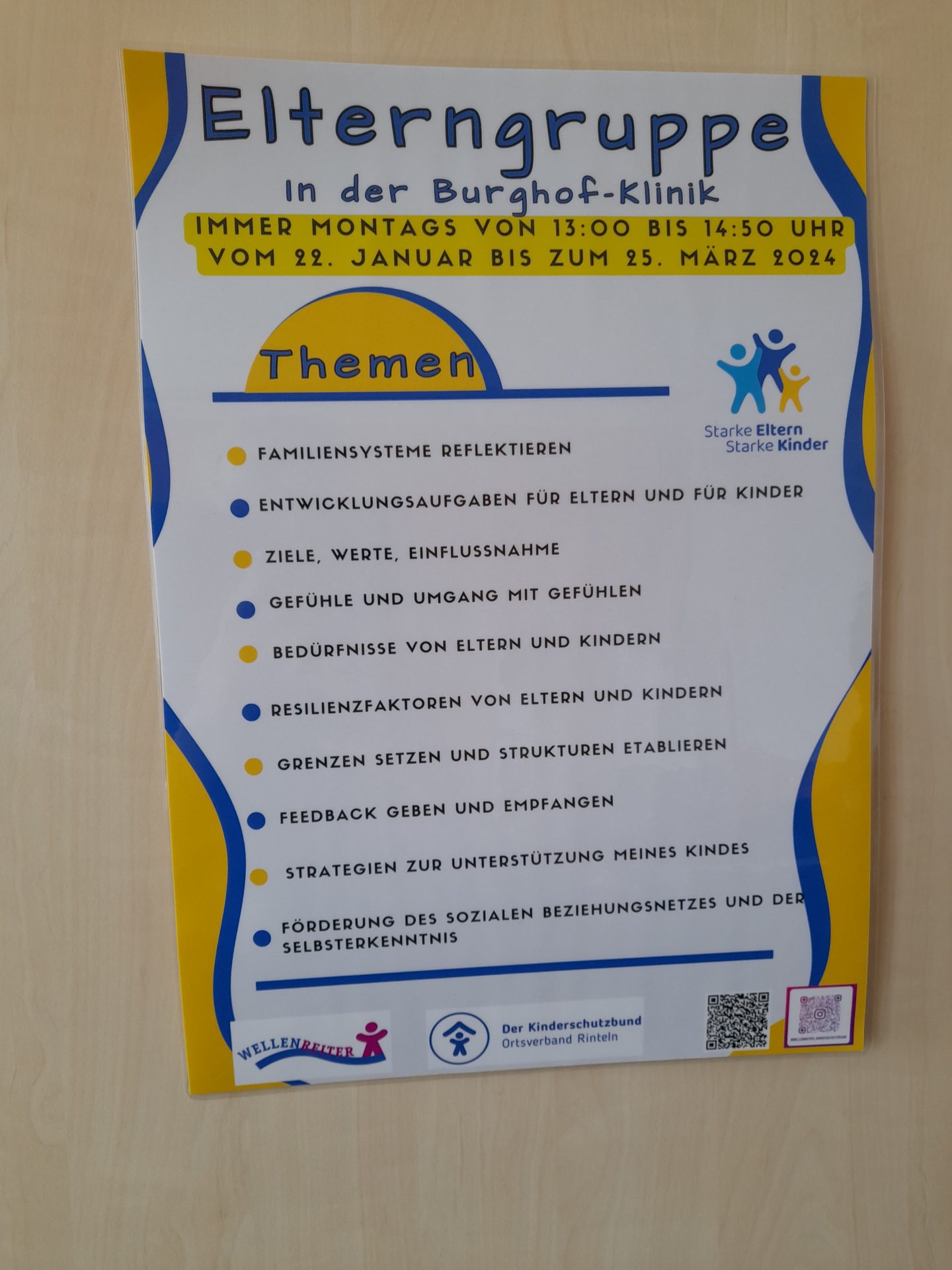 Jeden Montag von 13:00 bis 14:50 Uhr findet in der Virchowstraße 5 in Rinteln eine Elterngruppe für alle Patient*innen der Burghof-Klinik statt. Dieser regelmäßige Austausch- und Reflektionsrahmen ist modulhaft aufgebaut – eine Teilnahme ist über ein Modul oder einen längeren Zeitraum hinweg möglich.