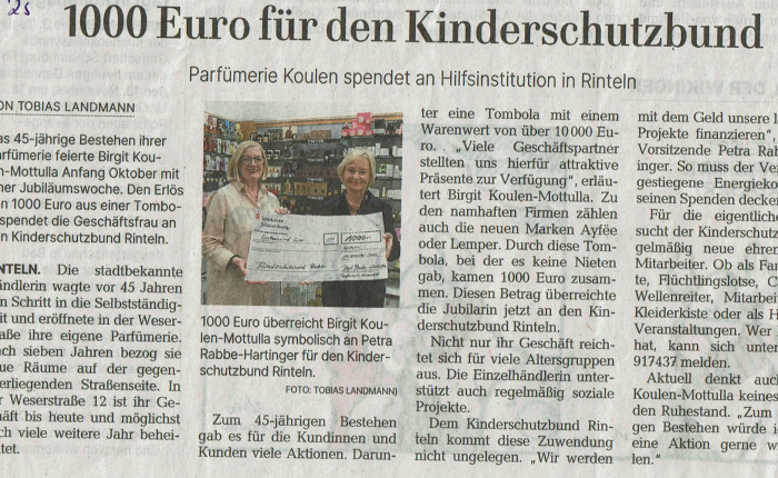 Der Kinderschutzbund Rinteln hat eine lange Warteliste von Familien, die sich einmal pro Woche Unterstützung und Entlastung durch eine Patin oder einen Paten wünschen. Frau B. aus Bückeburg beispielsweise betreut ihr Baby als alleinerziehende Mutter rund um die Uhr. Ihre Angehörigen leben weit entfernt. Allein die Vorstellung, einmal pro Woche für zwei Stunden entlastet zu...