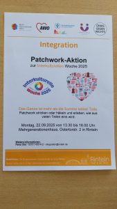 Anlässlich der Interkulturellen Woche findet am Montag, dem 22.09.2025 von 13.30 bis 16.00 Uhr eine Patchwork-Aktion statt, zu der die Stadt Rinteln, die AWO, der Kinderschutzbund Rinteln, der Migrationsrat sowie die „Omas gegen rechts“ alle Bürgerinnen und Bürger herzlich einladen. Gemeinsam stricken und häkeln wir im Mehrgenerationenhaus Rinteln bei Kaffee, Tee und Gebäck bunte Patchworkarbeiten, die im Anschluss zusammengefügt werden. Mit der vollständigen Patchwork-Arbeit wird dann ein Baum vor dem Mehrgenerationenhaus ummantelt. Es besteht auch die Möglichkeit, bereits fertig gestellte Teile in der Größe von 10 x 10 cm im Vorfeld immer montags zwischen 14 und 16 Uhr im Mehrgenerationenhaus, Ostertorstr. 2 in Rinteln abzugeben.